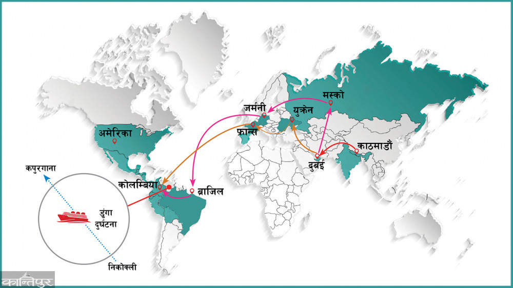 काठमाडौँ — क्यारेबियन सागरमा डुंगा दुर्घटनामा परेर बेपत्ता भइरहेका सात नेपालीको अवस्था अज्ञात रहेका बेला उनीहरूलाई कसले त्यहाँसम्म पठायो भन्ने खोजी सुरु भएको छ । विश्वव्यापी कोरोना संक्रमणको फैलावट र अन्तरदेशीय उडानहरू प्रभावित भइरहेका बेला उनीहरूलाई कसले पुर्यायो त कोलम्बिया ?