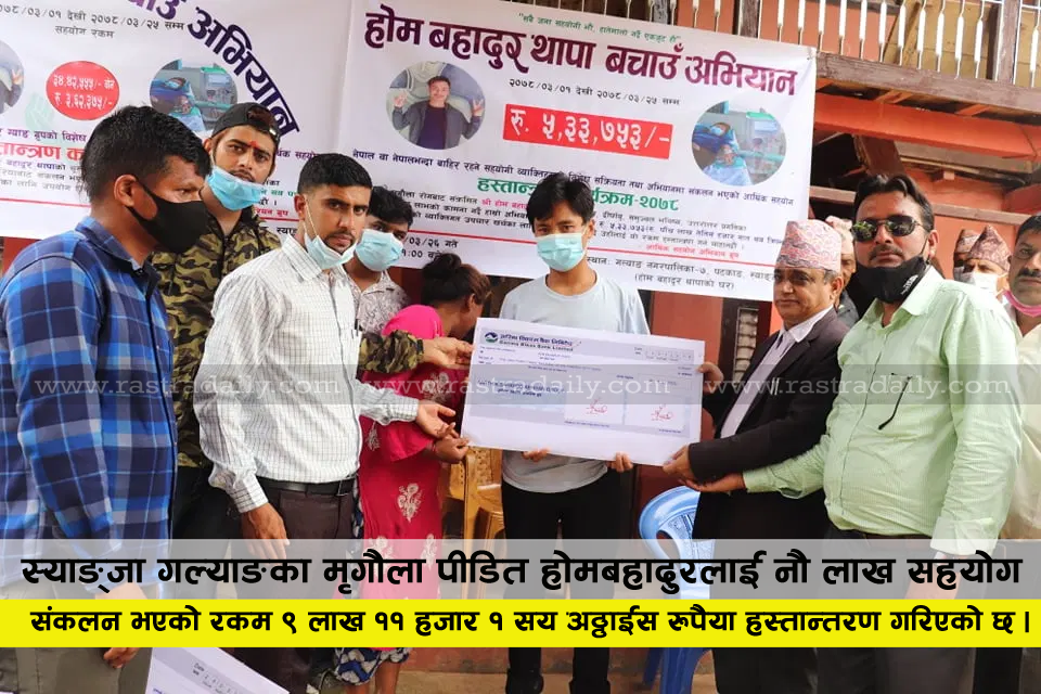 स्याङ्जा गल्याङका मृगौला पीडित होमबहादुरलाई नौ लाख सहयोग