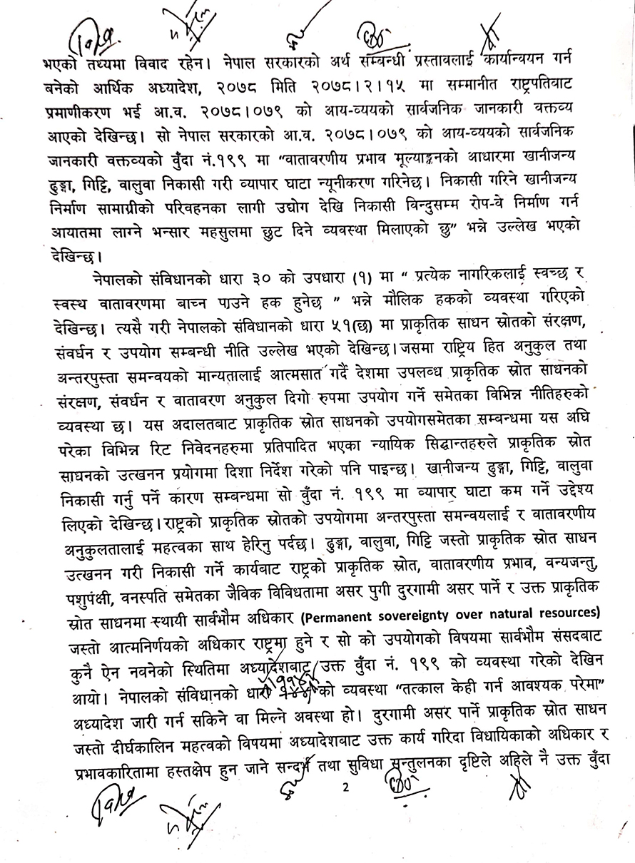 सर्वोच्च अदालतले ढुंगा, गिटी बालुवा निकासी गर्ने गरी सरकारले आर्थिक वर्ष २०७८–७९ को बजेट वक्तव्यमा गरेको व्यवस्था कार्यान्वयन नगर्न अन्तरिम आदेश जारी गरेको छ ।