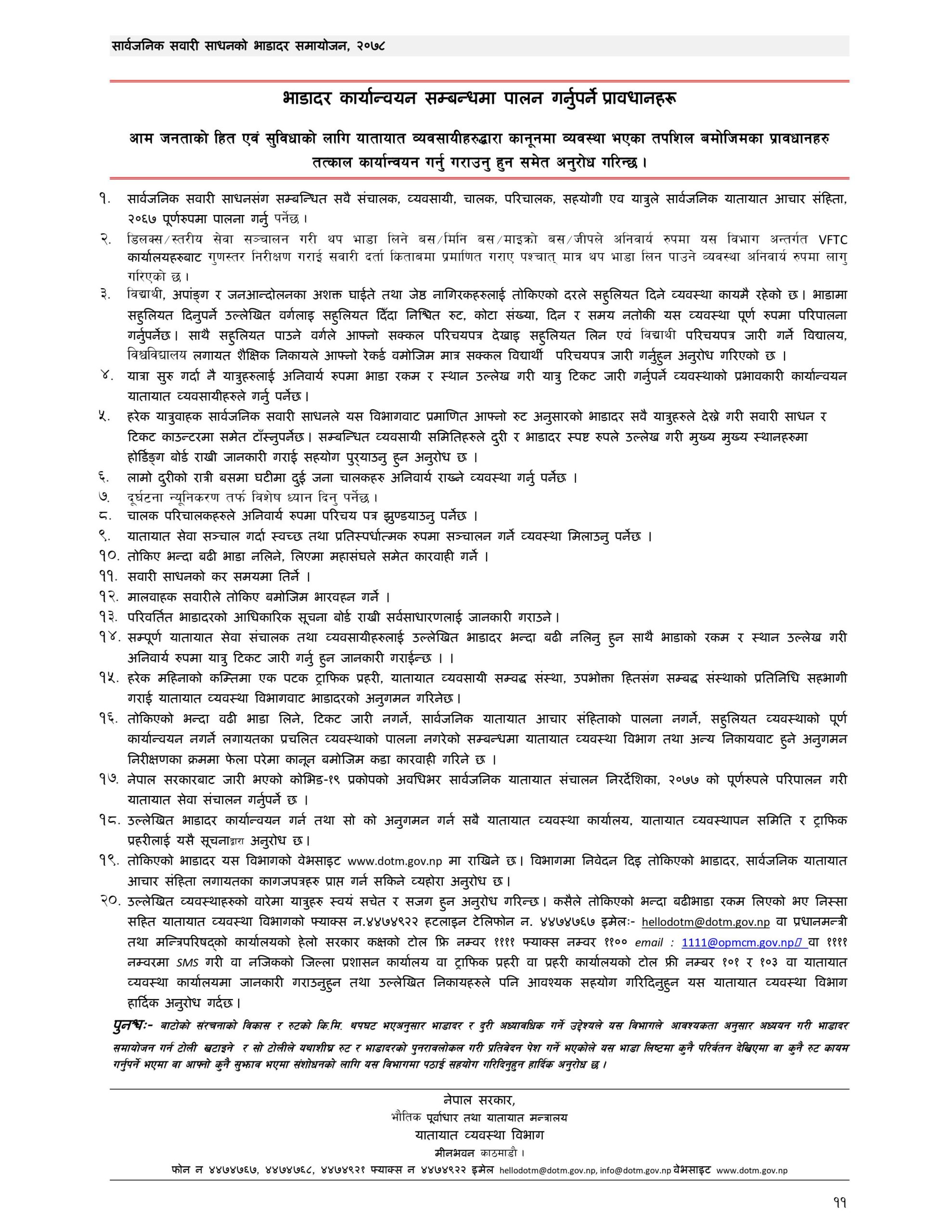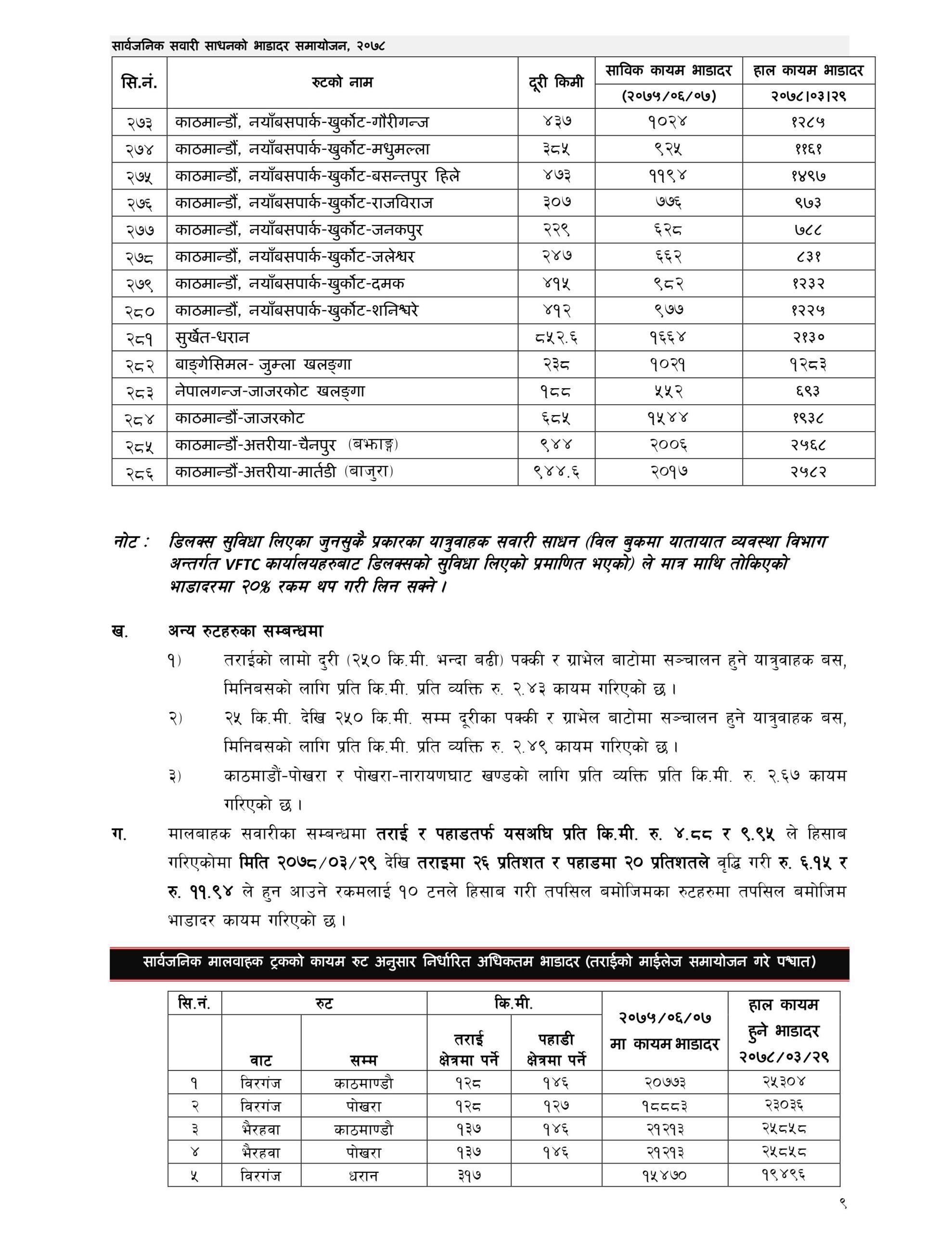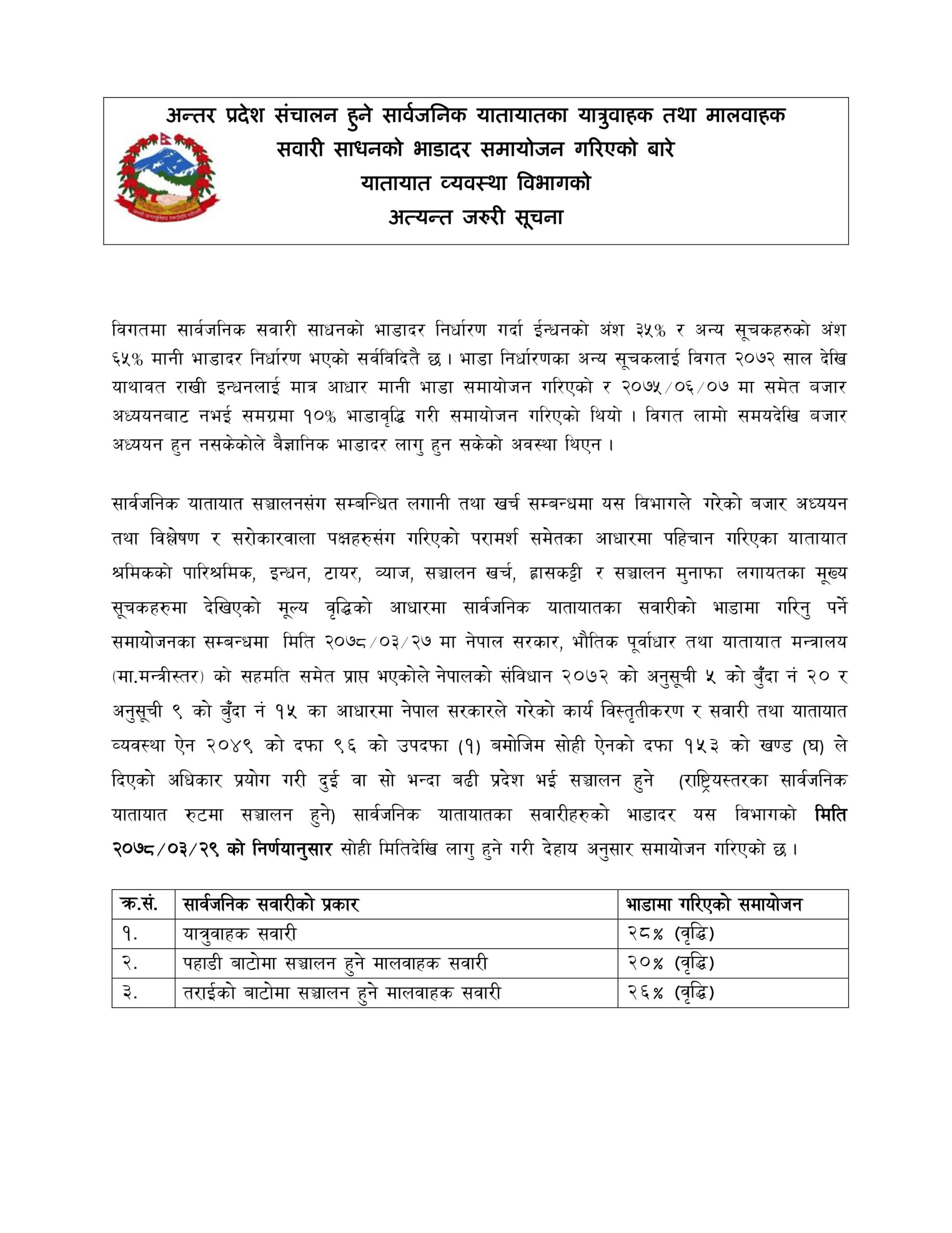बढेको भाडा दर दुई वा दुईभन्दा धेरै प्रदेश भएर चल्ने लामो दुरीका गाडीमा लागू हुनेछ ।