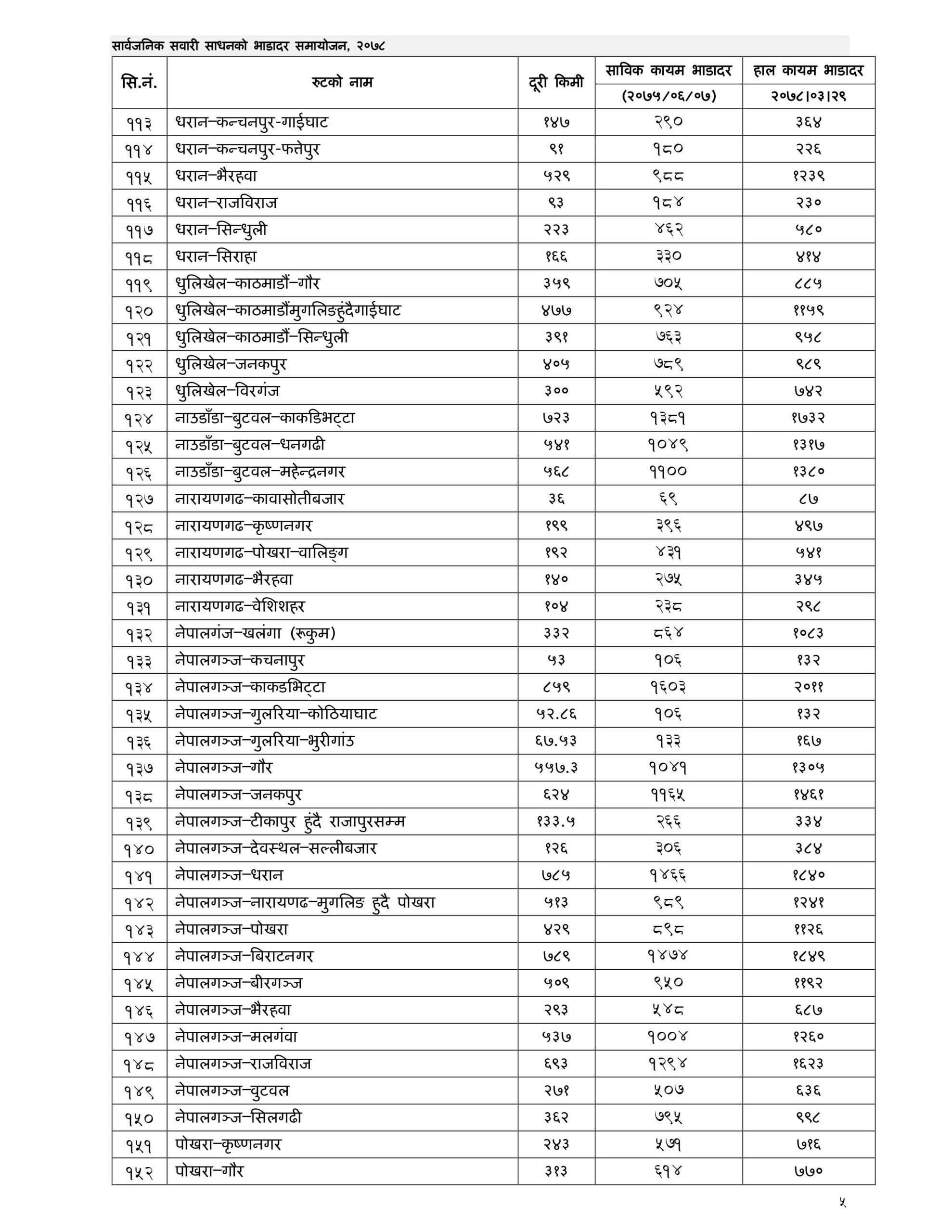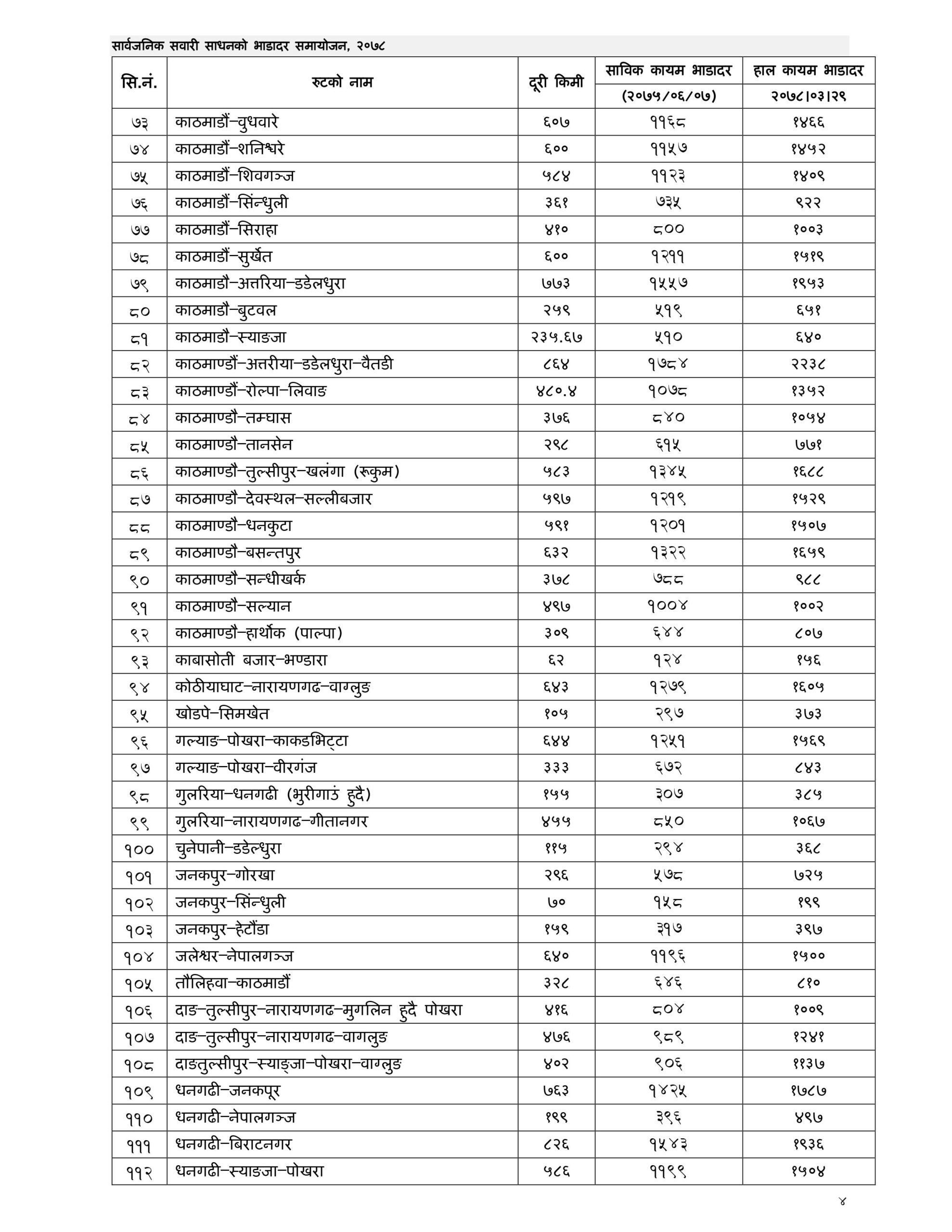 सरकारले लामो दुरीका सार्वजनिक गाडीमा बढाएको भाडा दर सार्वजनिक गरेको छ ।