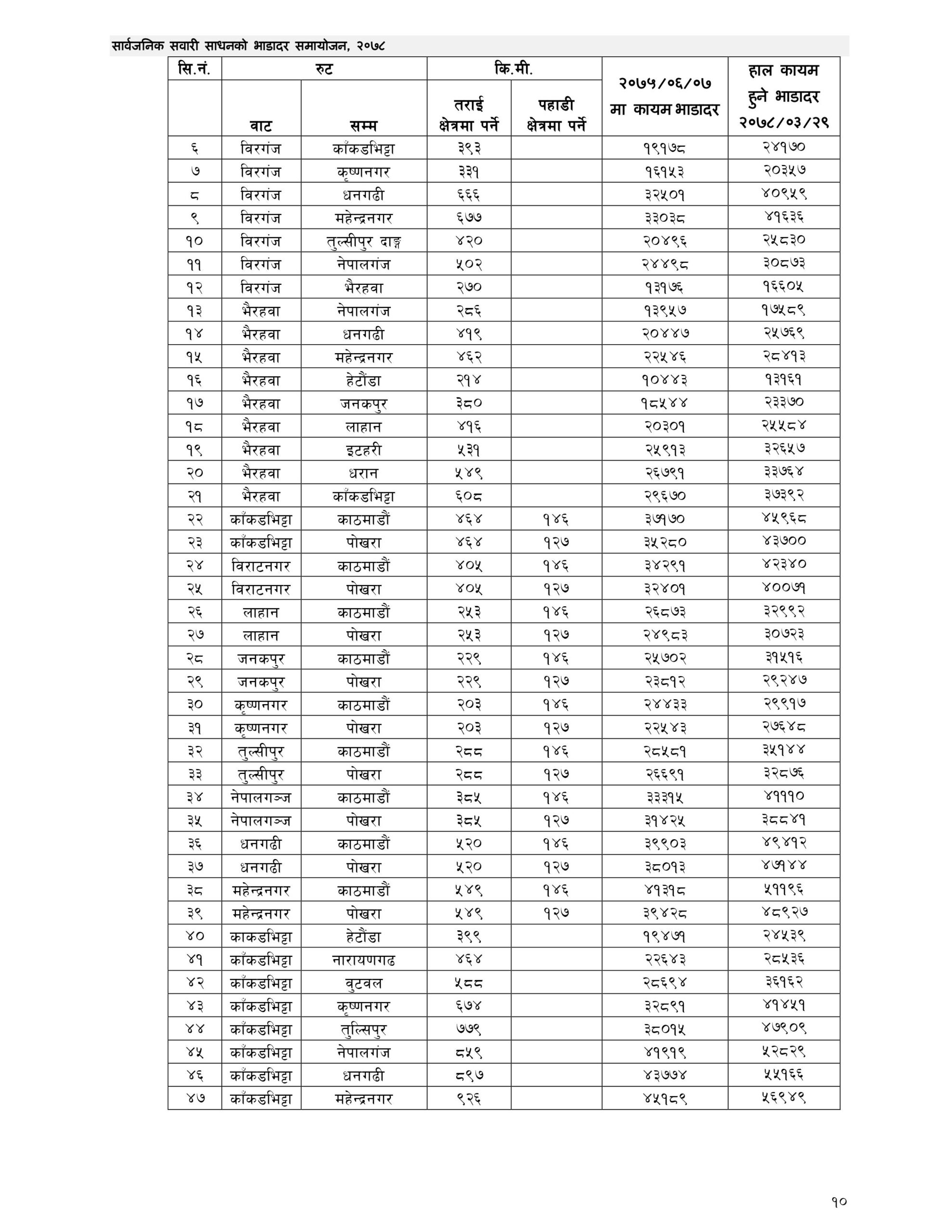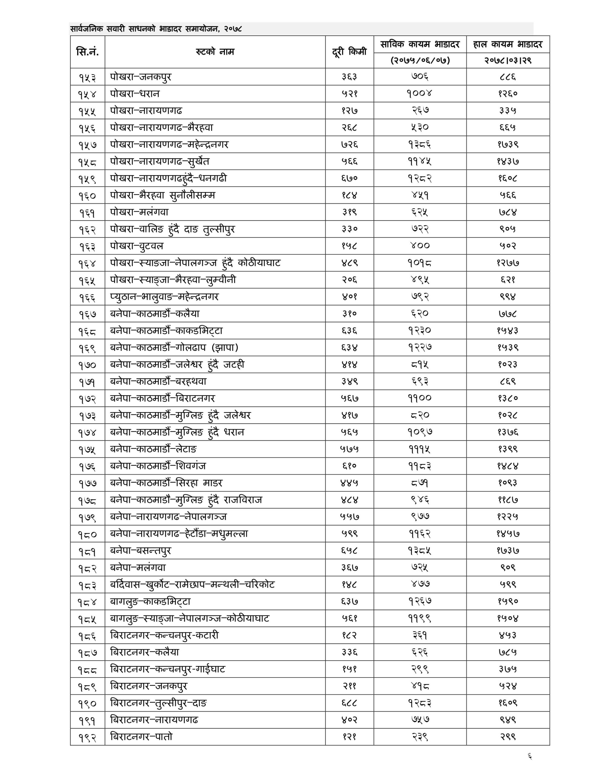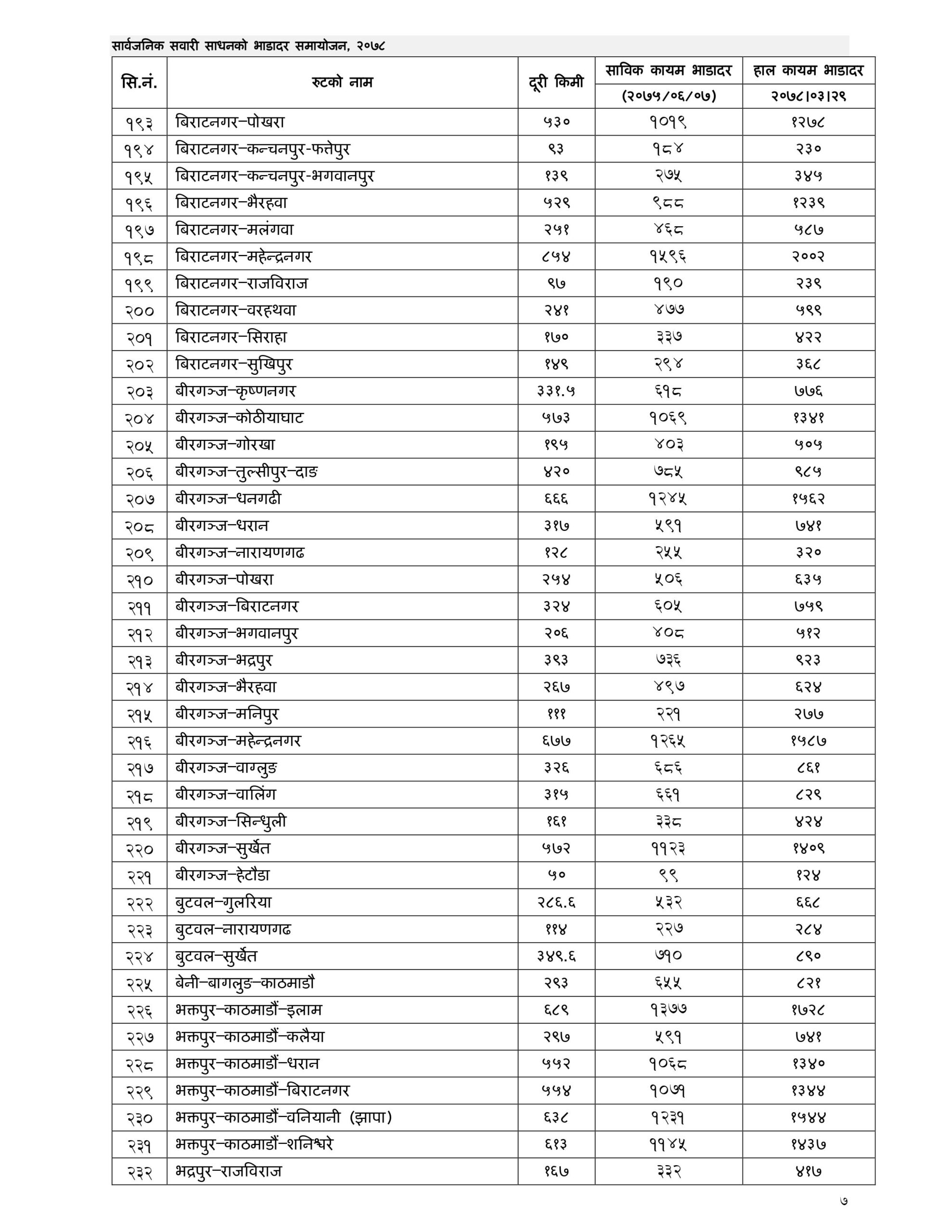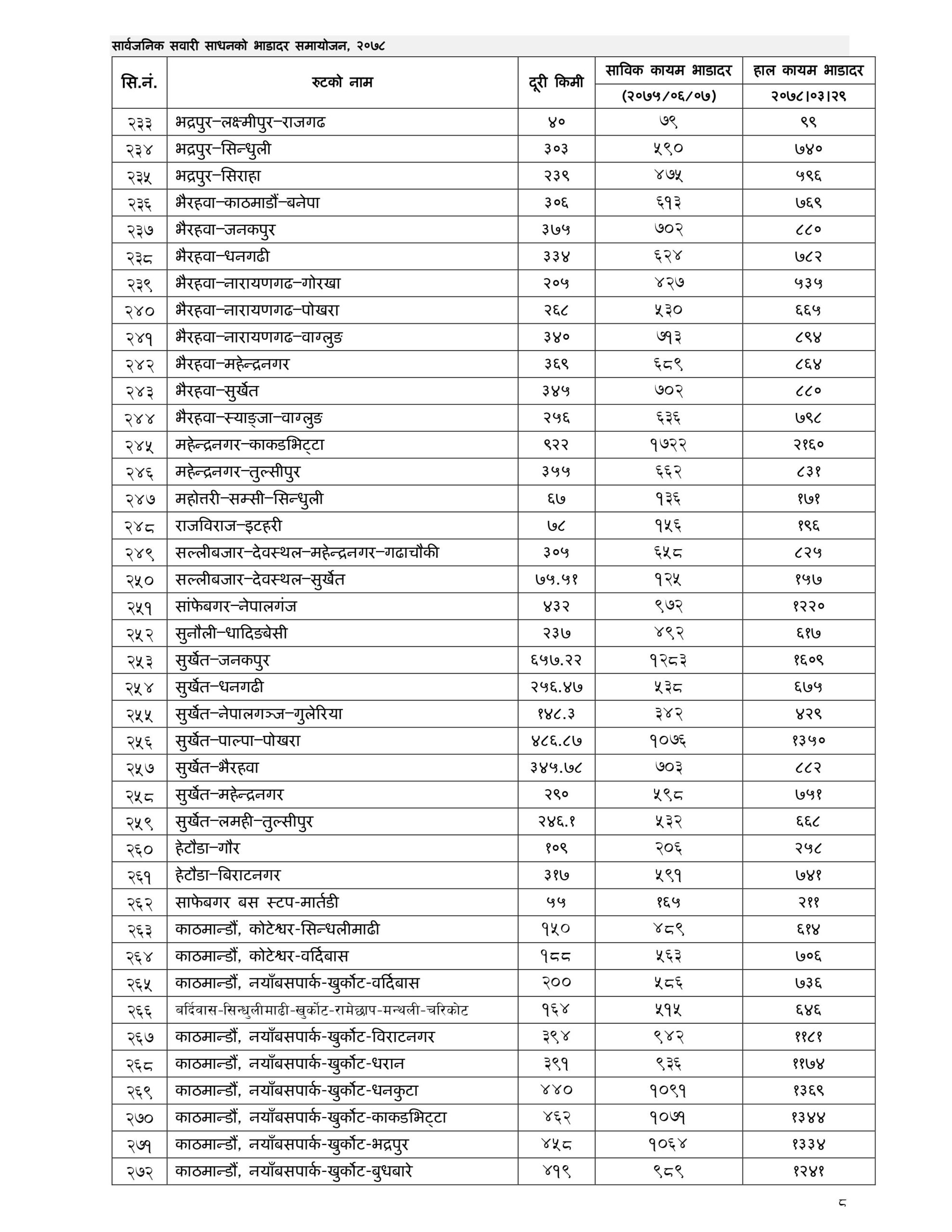२०७५ सालको असोजमा पछाडि भाडा वढेको थिएन ।