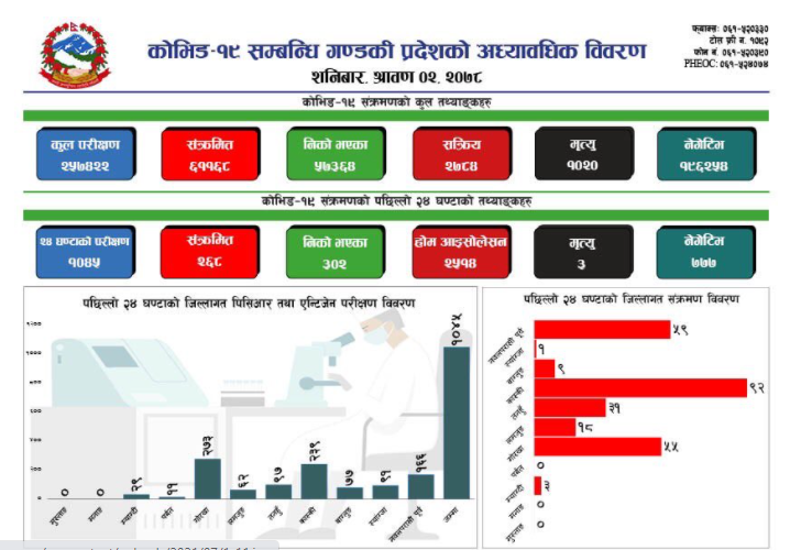 गण्डकीप्रेदशमा आज थप २सय ६८ जनामा कोरोना संक्रमण पुष्टि भएको छ ।