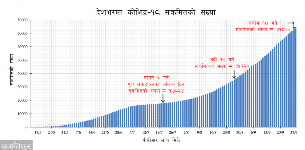 चैत ११ गतेदेखि लगाइएको लकडाउनलाई साउन ७ गतेबाट खुकुलो बनाइएको थियो । लकडाउन खुकुलो हुने अघिल्लो दिन साउन ६ गते कोरोना संक्रमितहरुको संख्या १७ हजार ९ सय ९४ रहेको थियो । त्यसमा पनि २० वर्षभन्दा कम उमेर समूहका २०.५ प्रतिशत संक्रमित थिए भने २१ देखि ४० वर्षसम्मको उमेर समूहका ६३.६ प्रतिशत संक्रमित थिए । यस्तै ४१–६० वर्ष उमेर समूहका १४.२ प्रतिशत संक्रमित हुँदा ६१ वर्षभन्दा माथि उमेर भएकाहरु केवल १.६ प्रतिशत मात्रै संक्रमित थिए ।