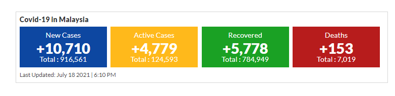 हाल मलेसियामा १ लाख चौविस हजार पाचँ सय त्रियानव्वे जना सक्रिय सक्रमित रहेका छन जसमध्ये चार हजार ७ सय उनासी जनाको स्थानिय अस्पतालहरुमा उपचार भैरहेको छ ।