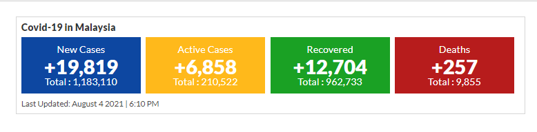 मलेसियामा आज १९ हजार ८ सय १९ जना कोरोना सक्रमण थपिएका छन । यो आजसम्मकै सवैभन्दा धेरै हो ।