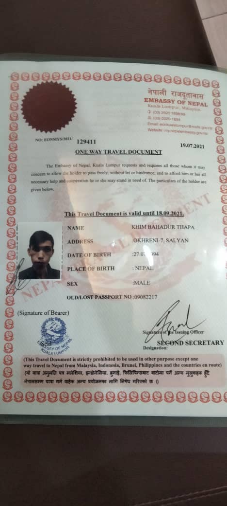 मलेसियामा एक नेपालीको मृत्यु भएको छ । ओख्रेनी ७ सल्यान घर भई मलेसियामा कार्यरत २७ वर्षिय खिम वहादुर थापाको मृत्यु भएको हो । नेपाल फर्कनको लागि उनले १९ तारिखका दिन नेपाली दुतावासले जारी गर्ने यात्रा अनुमतिपत्र समेत वनाईसकेका थिए । मलेसिया दुतावासले घर फर्कने प्रयोजनको लागि मात्र यात्रा अनुमती पत्र जारी गर्ने गर्दछ ।