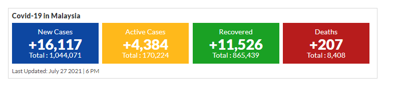 आज मात्रै मलेसियामा सक्रमणवाट थप २०७ जनाको मृत्यु भएको छ ।