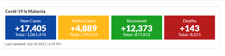 मलेसियामा आज सम्मकै धेरै १७ हजार ४ सय ५ जनामा कोरोना सक्रमण फेला परेको छ ।