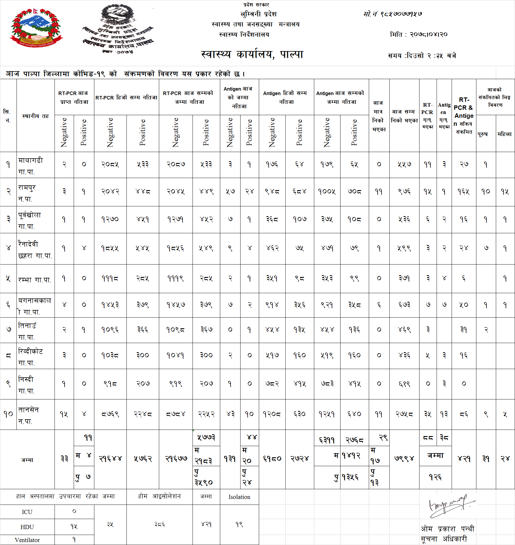 पाल्पामा बुधवार ५५ जना कोरोना संक्रमित थपिएका छन् ।