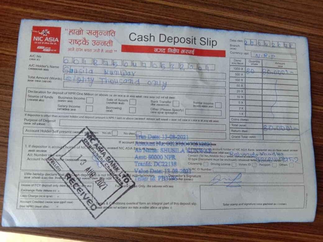 मलाई जति सकिन्छ सहयोग यो तलको खातामा जम्मा गरिदिनु होला