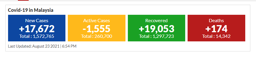 अहिले मलेसियामा २ लाख ६० हजार ७०० जना सक्रिय सक्रमित छन ।
