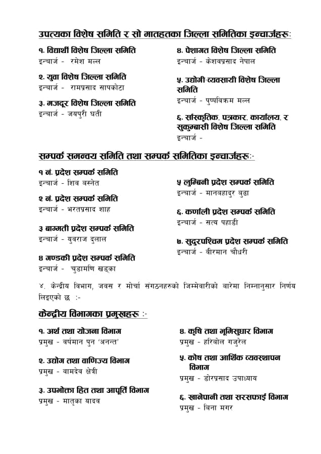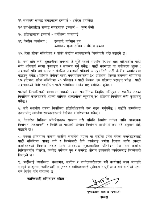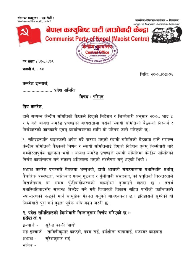 यस्तो छ माओवादी केन्द्रको नयाँ जिम्मेवारी