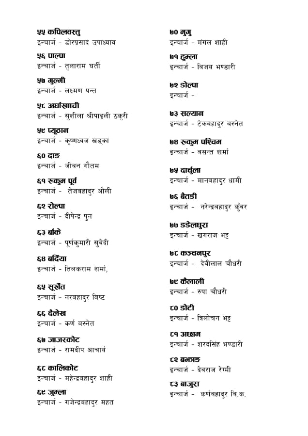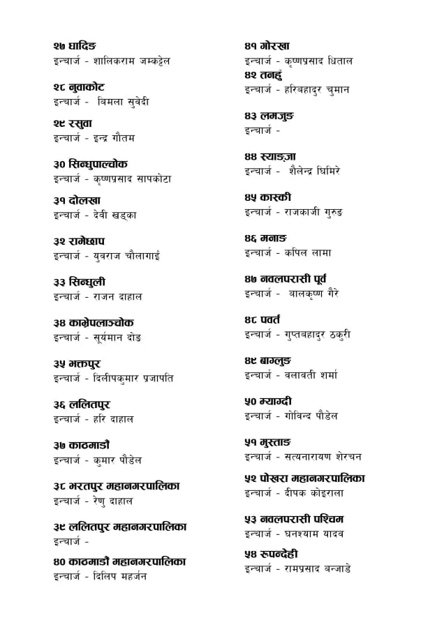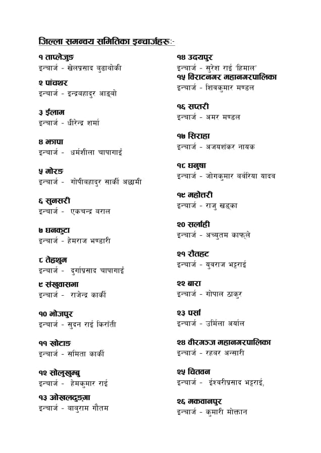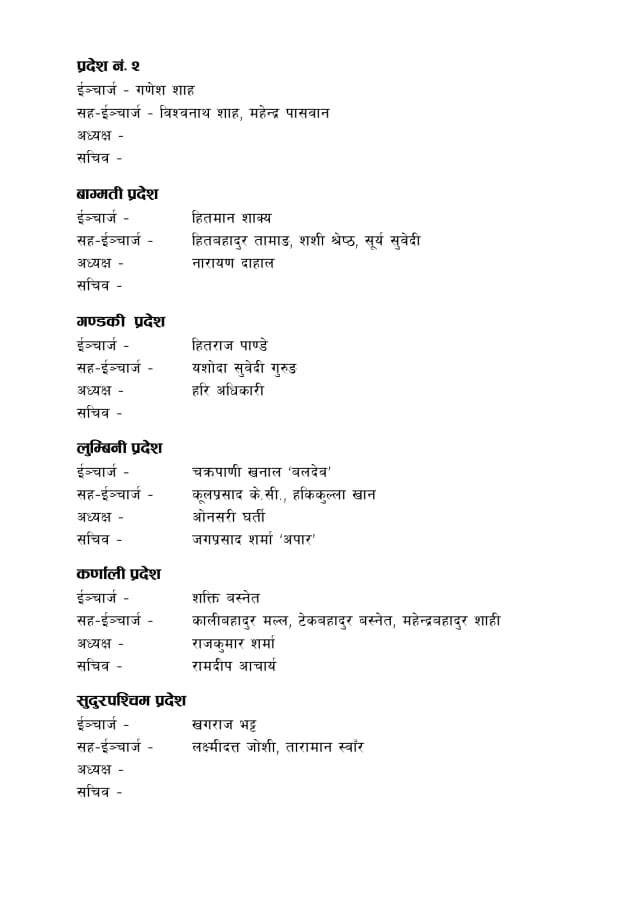 नेकपा (माओवादी केन्द्र)ले नेताहरुको जिम्मेवारी हेरफेर गरेको छ।