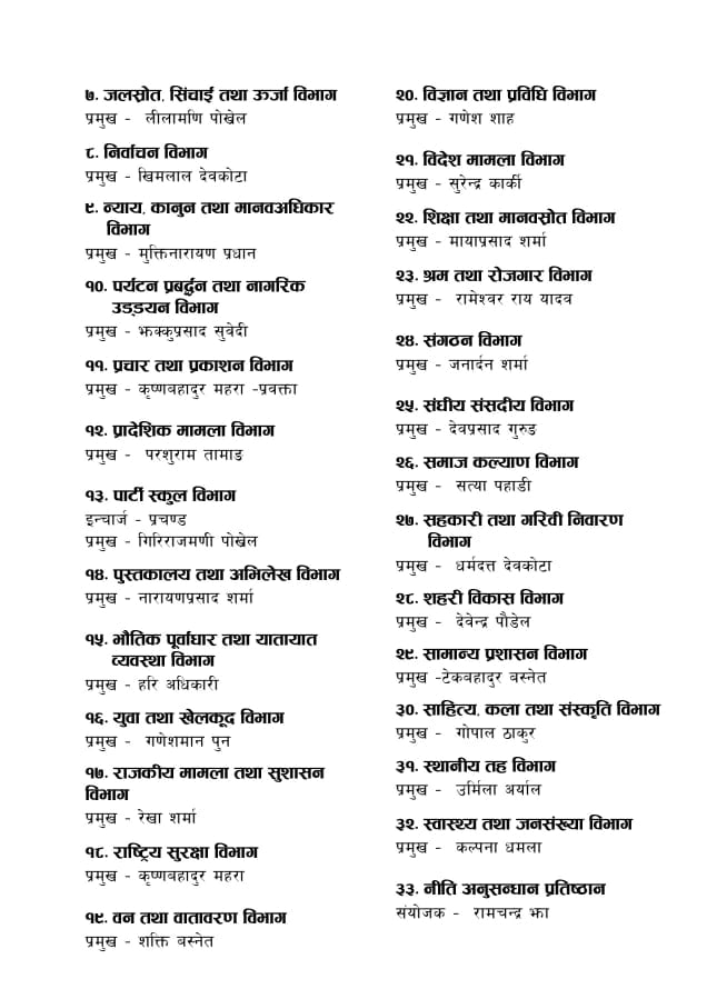 यसअघि कर्णाली प्रदेशको इञ्चार्ज रहेको जनार्दन शर्मालाई संगठन विभाग प्रमुखको जिम्मेवारी दिईएको छ ।