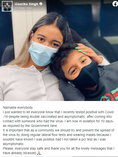 गौरिकाले आफूलाई कुनै लक्षण नरहेको र परिक्षण नगरेको भए संक्रमणबारे थाहा नहुन सक्ने बताइन् । उनले सबैलाई सुरक्षित रहन अनुरोध गर्दै आफ्नो सुस्वास्थ्यको कामना गर्ने सम्पूर्णलाई धन्यवाद व्यक्त गरिन् ।