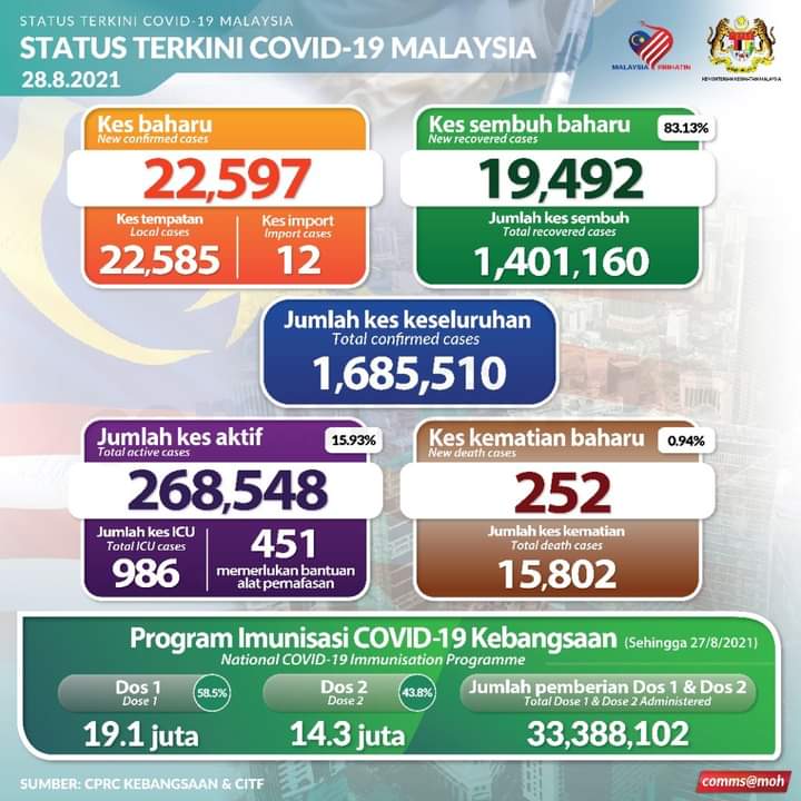 मलेसियामा आज २२हजार ५९७ जनामा कोराना सक्रमण पुष्टि भएको छ । आज थपिएका सगै सक्रमित हुनेको सख्या १६ लाख ८५ हजार ५१० पुगेको छ ।