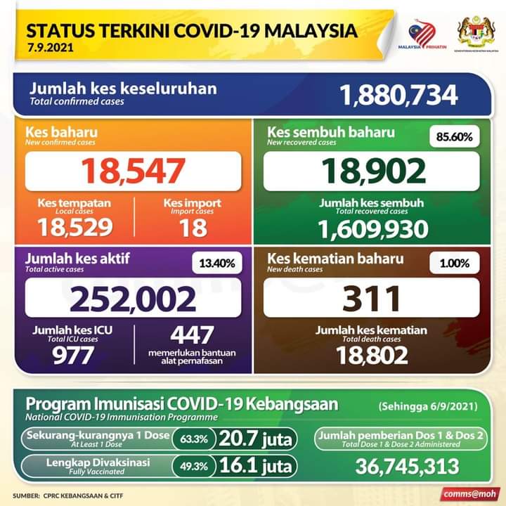 मलेसियामा आज १८९०२ जना सक्रमित थपिएका छन ।