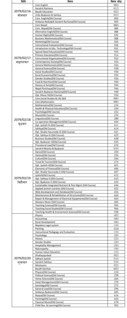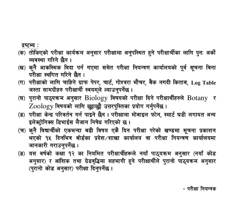 सोही आधारमा बोर्डले परीक्षा तालिका समेत सार्वजनिक गरेको छ ।