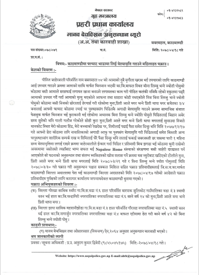 गोरखाको बारपाक सुलिकोट गाउँपालिका–३ की प्रिती थापा मगर र झापाको गौरादह नगरपालिका–५ की ज्योती पोमुलाई काठमाडौं जिल्ला अदालतले पुर्पक्षका लागी थुनामा पठाउन आदेश दिएको हो ।