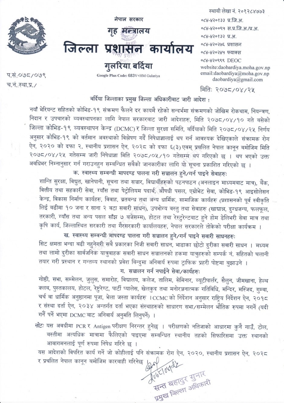 जिल्ला कोभिड संकट व्यवस्थापन केन्द्रको बैठकले भदौ १० गते सम्मका लागि निषेधाज्ञा बढाएको हो ।